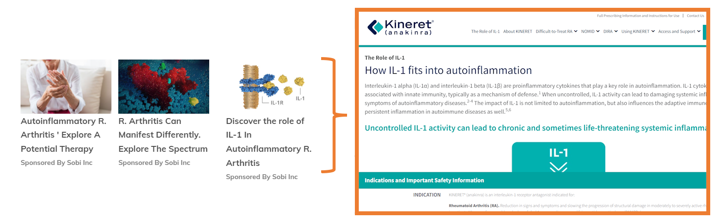 DTC Example 4 - Client utilized pharma style “help seeking ads” and “reminder ads” to target consumers reading specific types of clinical content to generate traffic and engagement to their RX brand site.